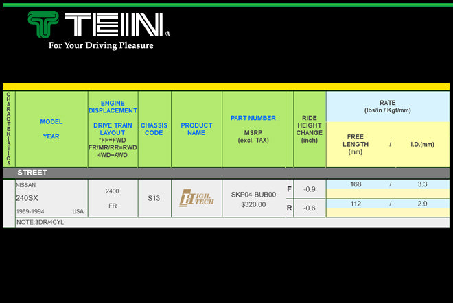 Tein High Tech Front/Rear Lowering Spring Kit - S13 240sx 89-94