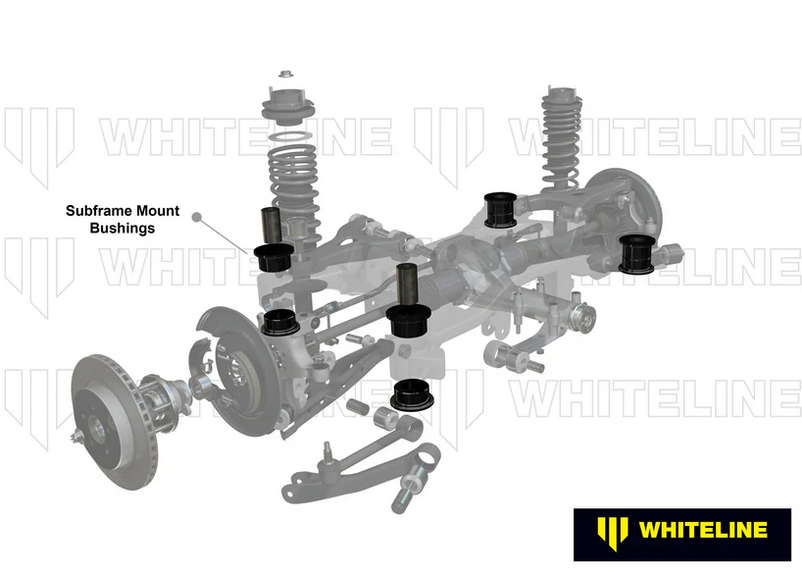 The Whiteline kit replaces the bushings in the rear subframe to dramatically reduce rear cross member misalignment and movement which allows a more positive feel from the rear end during cornering. Recommended for motorsport applications.
